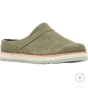 Olive green Merrell clogs NWT never warn sadly a little too big for me I’m usually a size 5.5-6 and these are a 5.5 but fit a little bigger. Super cute great quality perfect for fall!