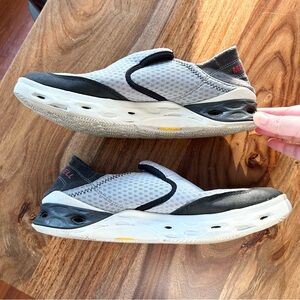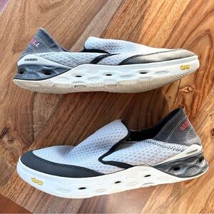 They state “hydromorph” and “Vibram” on the side, but the tag says these are a sample and I’ve never seen the laceless kind before - they must be rare!