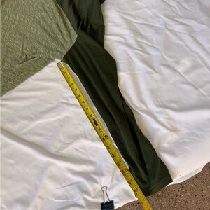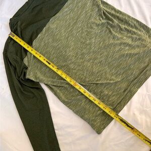 Olive green pullover by Merrell. Features an orange brand tag.