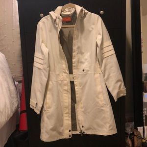 Merrell rain jacket. Flattering button detail at waist. Off white color.