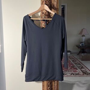 long sleeve knit yoga top. V-neck design. Perfect for casual wear.