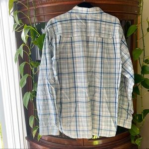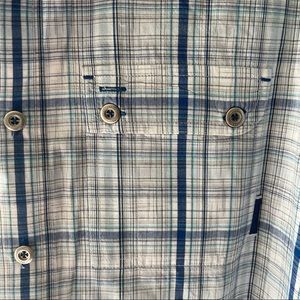 EUC Merrell plaid button down! Super lightweight and perfect for the spring and summer. Features a double breast pocket, one that buttons closed, and one that’s open. Blue, navy, white, and grey plaid pattern. No flaws, my brother just doesn’t wear it!