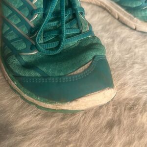 These shoes are a nice condition. They are starting to wear around where you put your feet in around the ankle area. See last three photos.