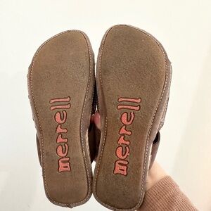 Merrell sundial leather women’s sandals slip ons brown boho summer beach neutral