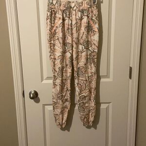 Lightweight wick floral left tropical joggers with front zippered pockets and elastic waist