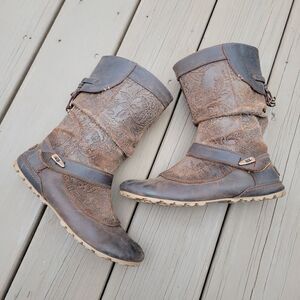 Merrell Haven Embossed Floral Paisley Brown Oiled Leather Mid Calf Boots 7