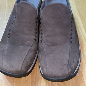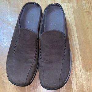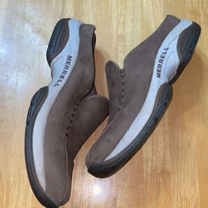 Merrell dark taupe leather slip on slides size 10