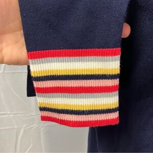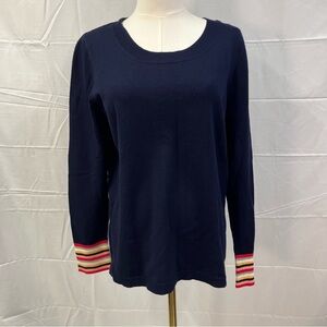 Merrid Crew Neck Colorful Striped Cuff and back Long sleeve sweater Womens Large Biden Style Preppy
