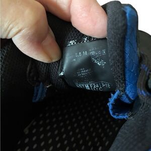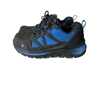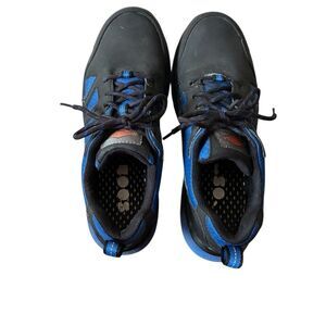 Durable and stylish men's work shoes featuring a sleek black and blue design. Perfect for both casual and professional settings. Clean and in good condition. Men’s size 6.5