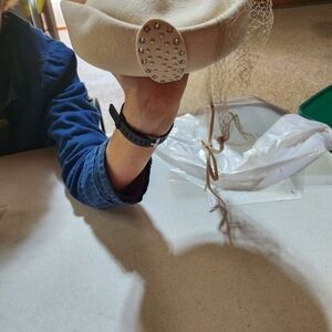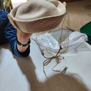 Merrimac Hat Corp. Gardenia Vintage 100% Wool Embellished Hat w/ netting & Chin