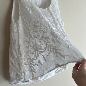 The perfect summer tank with a comfortable and soft lining. This white embroidery floral detail makes for the perfect throw on summer piece. Get your jean shorts or jeans and plan to have a good throw-on all season!