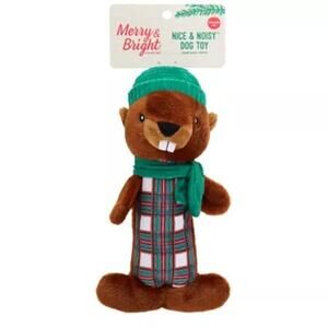 Merry & Bright Beaver Double Squeak Dog Toy Noisy Plush Festive Winter Play