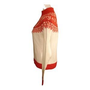 In excellent pre-owned condition please review the photos measurements are in them. The Merry & Bright Fair Isle Red And White Holiday Time Christmas Sweater is a festive and cozy pullover perfect for holiday gatherings or casual wear. Made from a stretchy knit fabric with a mock neck and raglan sleeves, this sweater features a charming Fair Isle pattern in red and white with metallic accents for added sparkle. The classic fit and easy care instructions make it a practical and stylish addition to your winter wardrobe, bursting with cheerful holiday cheer.