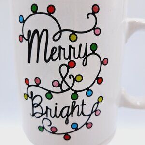 Merry & Bright Holiday Christmas Lights White Coffee Tea Mug
