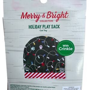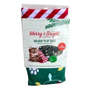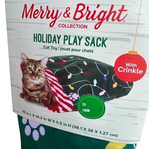 Merry & Bright Holiday Play Sack Cat Toy Green Lights Print Crinkle Play Hide