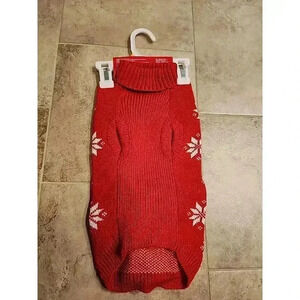 Red turtleneck sweater.