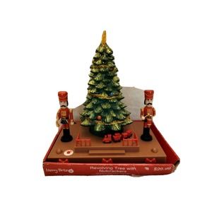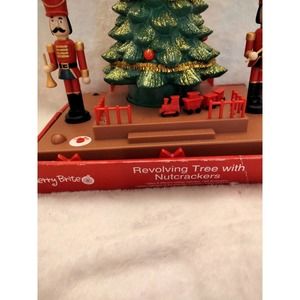 Merry Brite Animated Musical Christmas Tree Nutcracker Light Up Display. Plays 8 Christmas Songs. Tree lights and rotates. Requires 3 AA batteries. Damaged box but item without damage and works good