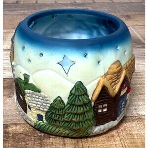 Merry Brite Ceramic Candle Holder With Winter Village Design