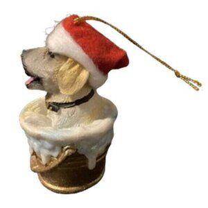Merry Brite Labrador Retriever Christmas Dog Ornament Santa Hat Bucket NEW