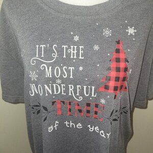 Merry Christmas 2 Short Sleeve T-Shirt Gray & Green Xmas Women's Size XL