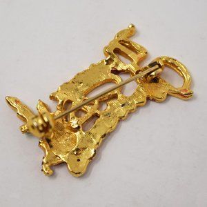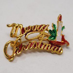 Merry Christmas Brooch Candle Goldtone Holiday Retro Festive Pin Party Office