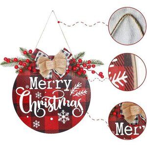 Merry Christmas Decoration Wreath, Christmas Red Plaid Door Hanging Sign 12 inch
