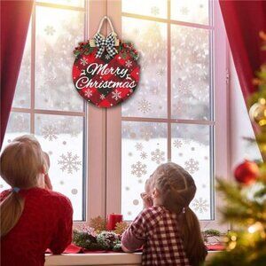 Merry Christmas Decoration Wreath Sign, Buffalo Plaid Welcome Sign