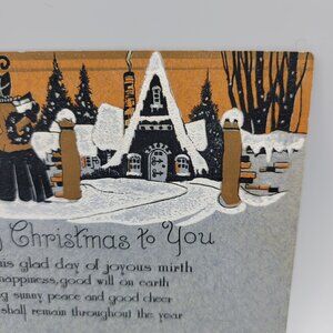 Merry Christmas Folded Vintage Card Snowy Scene Holiday Cheer Orange Textured