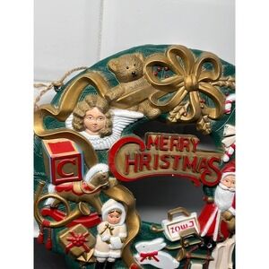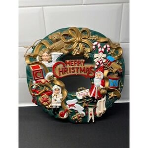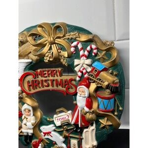 Lovely and nostalgic hard molded hanging Christmas wreath. Measures approximately 11”.