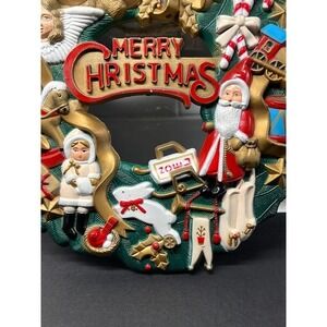 Merry Christmas Hard Molded Wreath decorated with iconic symbols