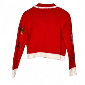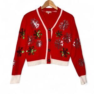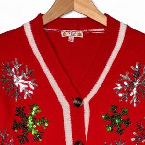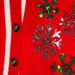 Merry Christmas Poof New York Size Medium Sequin Snowflake Cardigan Sweater