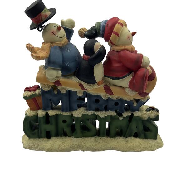 Merry Christmas Resin Snowman Family Sledding Figurine Decor Christmas Winter