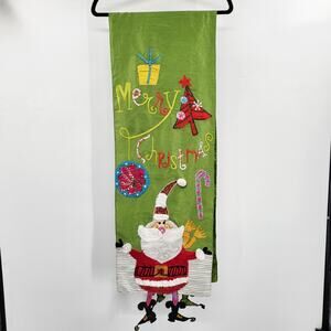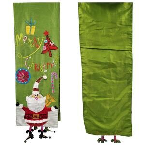 Merry Christmas Santa Themed Wall Banner Table Runner Embroidered Holiday Decor