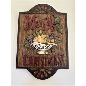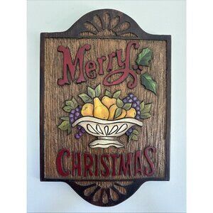 Rustic vintage carved wall hanging plaque with Merry Christmas design Wall mounted with hanger on back 18.5” x 12.5”