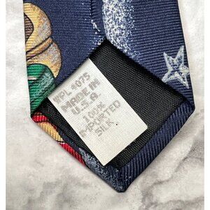 A festive and detailed holiday accessory with classic Santa illustrations and Christmas elements. Made from premium silk for a sophisticated seasonal touch.