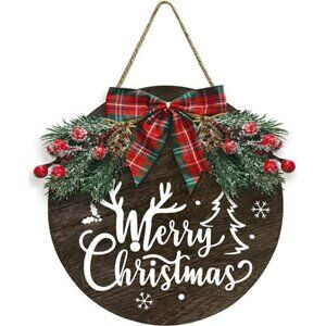 Merry Christmas Welcome Hanging Welcome Sign, Round Wooden Christmas Sign