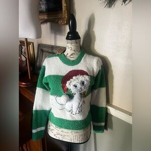 ❤️ Merry Christmas by POOF New York Green & White Cat Sweater NWT