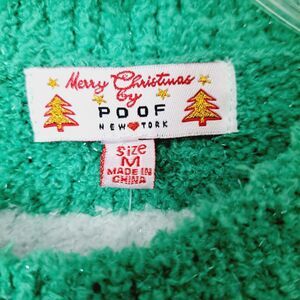 Merry Christmas by Poof Sweater Sz Medium Green White Sparkle Kitty Hat Bell NWT