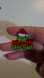 Festive pin featuring the Grinch in a Santa hat. Bold red and green colors.