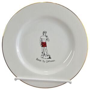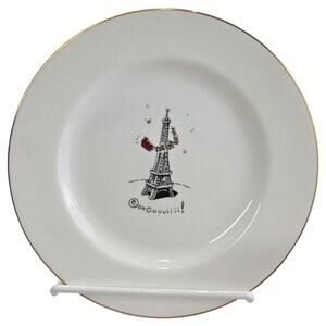 Color: White plates with multiple colors on graphics and gold around the rim.