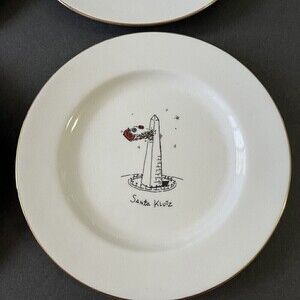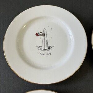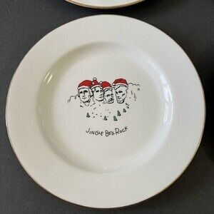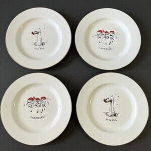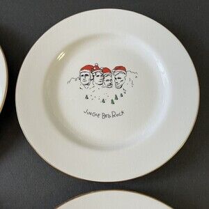 Merry Masterpieces Salad Dessert Plate Christmas Santa Humorous Whimsical Lot 4x