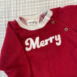 Cozy and stylish red kids matching set featuring a 'Merry' design. Perfect for festive occasions.