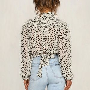 Merry Terry Chiffon Printed Polka Dot Bow Blouse