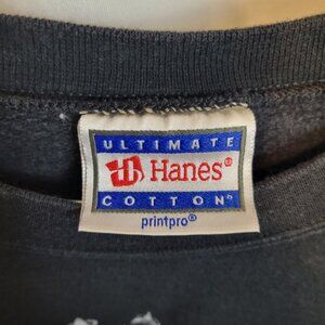 Hanes PrintPro Ultimate Cotton Sweatshirt, Size S 34-36. Black background, white letters.