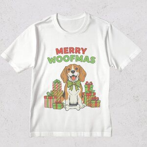 Merry Woofmas Graphic Tee Cute Dog Holiday T-Shirt Gift for Mom Funny Shirt