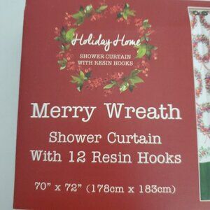 Matching set of 12 red and green resin merry wreaths and silver metal hooks are included