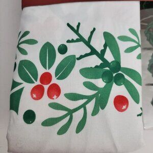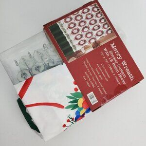 Features a pretty pattern of merry wreaths in shades of green, red and white