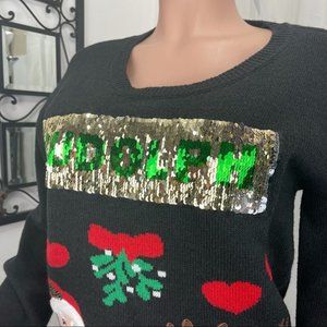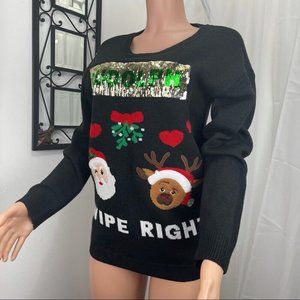 Merry&Bright Sequined Swipe Right Signed Christmas Sweater-Women SZ MEDIUM