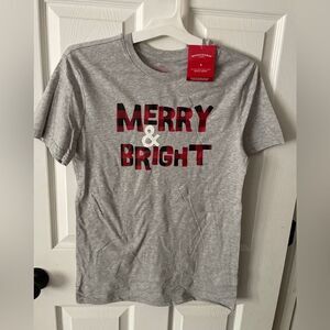 Merry & Bright Christmas tee shirt written in blk & red Buffalo plaid. Tagged as men’s small but definitely unisex. NWT. Smoke free/ pet friendly home. I ship immediately 📦 #christmas #holiday #festive