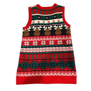 MerryWear Women’s Small V-Neck Fair Isle Ugly Christmas Rudolph Sweater Vest